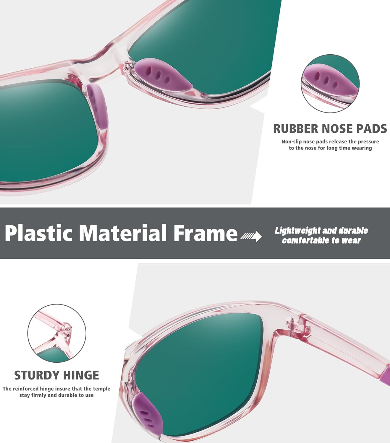 【COMFORTABLE WEARING DESIGN】- The one-piece comfortable nose pads can be worn for a long time without leaving marks. The temples and frame are made of high-quality plastic material,comfortable to wear, sporty and stylish.