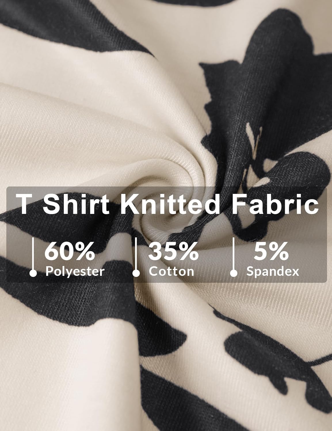 Material: T Shirt Fabric 60% Polyester, 35% Cotton, 5% Spandex.