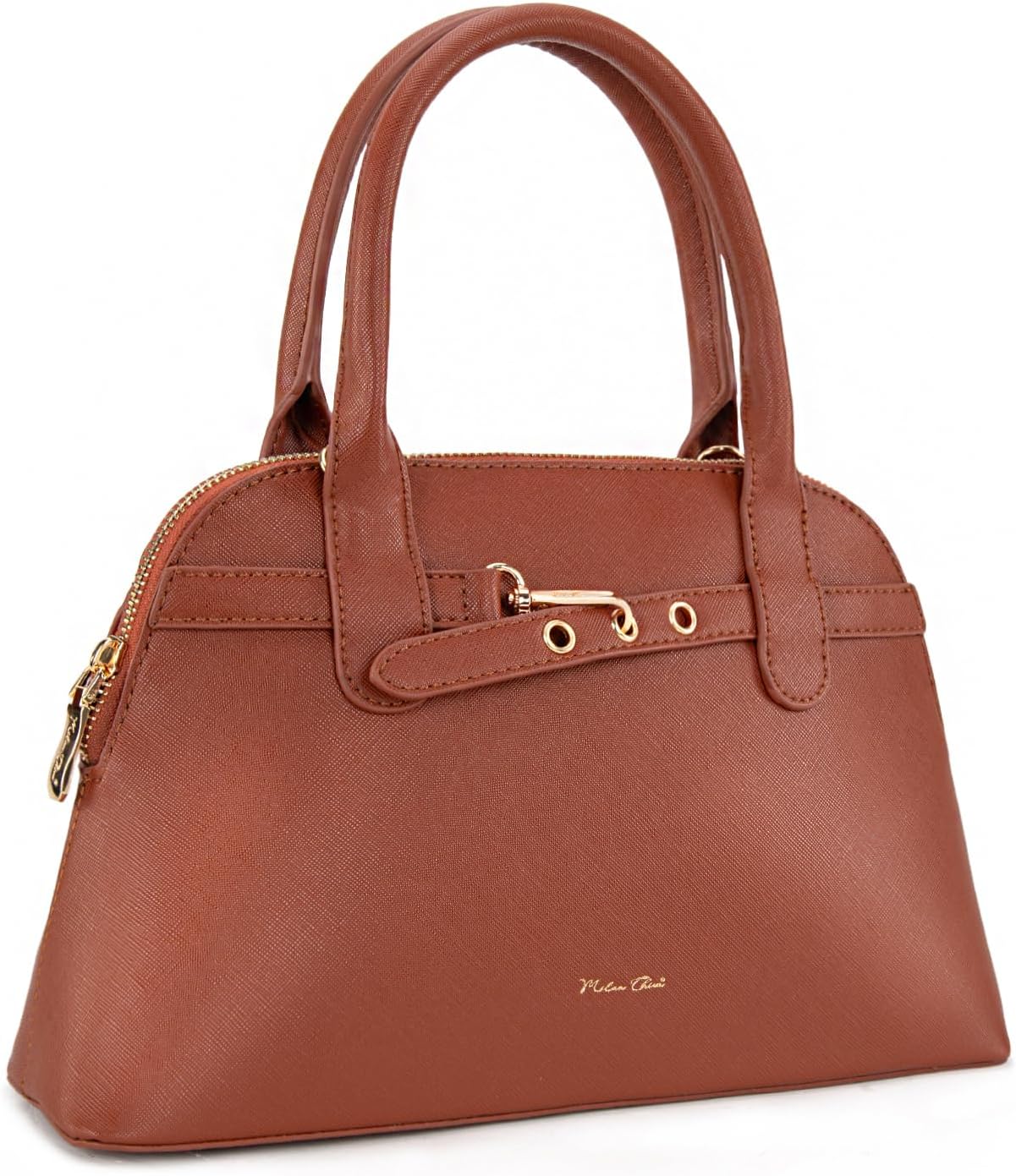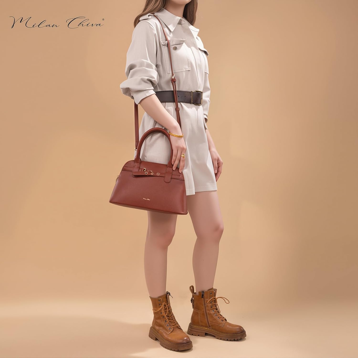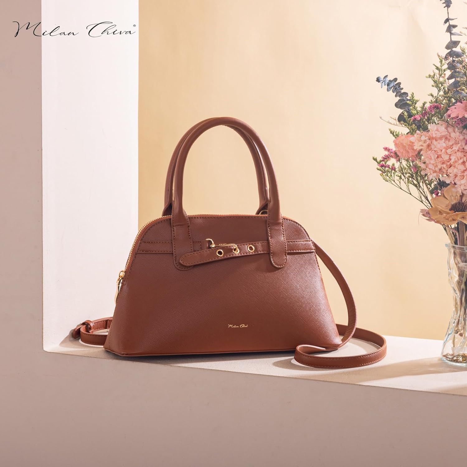 Be the first to review “Milan Chiva Dome Satchel Purse for Women Textured Top Handle Designer Crossbody Bag with Belted Detailing”