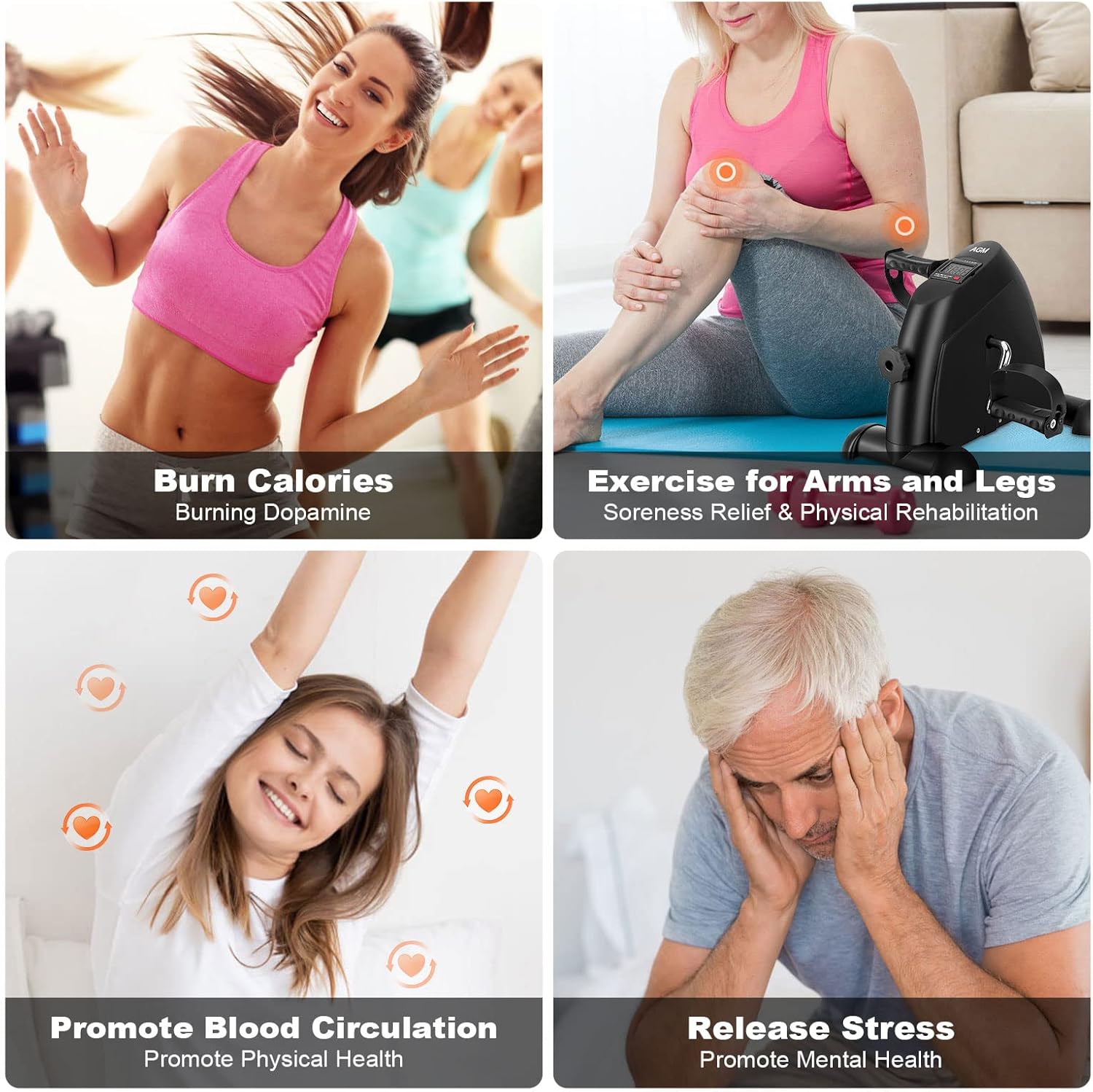 【Arm & Leg Mini Exercise Bike】AGM pedal exerciser can be used for arms and legs exercises to improve muscle strength, joint range of motion and coordination. You can use it on table top as an arm exerciser or placed on the floor to your legs exerciser while sitting.