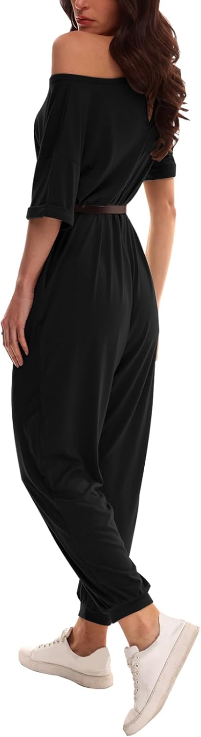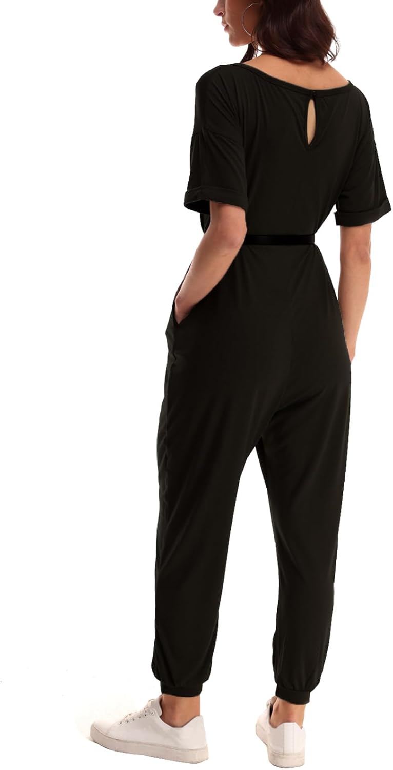 Nirovien Women Casual Loose Half Sleeve Beam Foot Long Pants Romper Jumpsuits