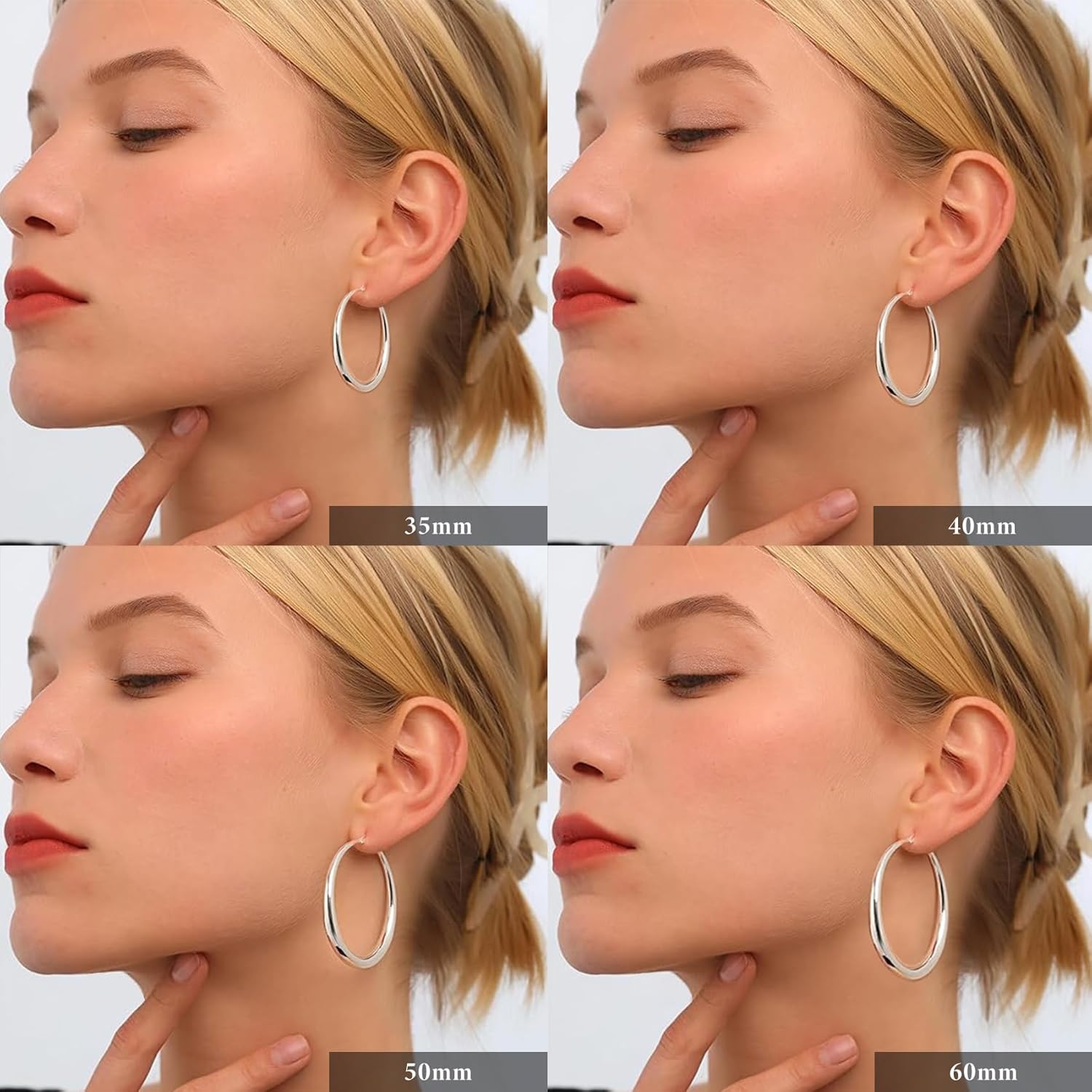 PABBEU S925 Sterling Silver Hoop Earrings Large Silver Hoop Earrings for Women Hypoallergenic Lightweight Big Thick Silver Hoop Earrings for Women Girls 35/40/50/60/70mm