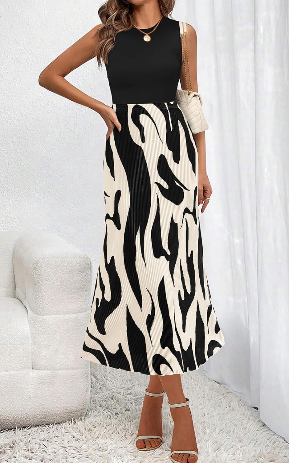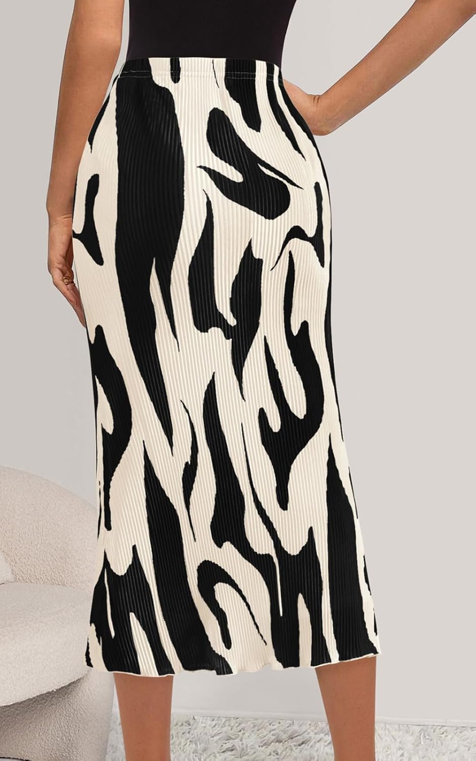 PRETTYGARDEN Zebra Print Womens Skirts Midi Length Plisse Skirt Women
