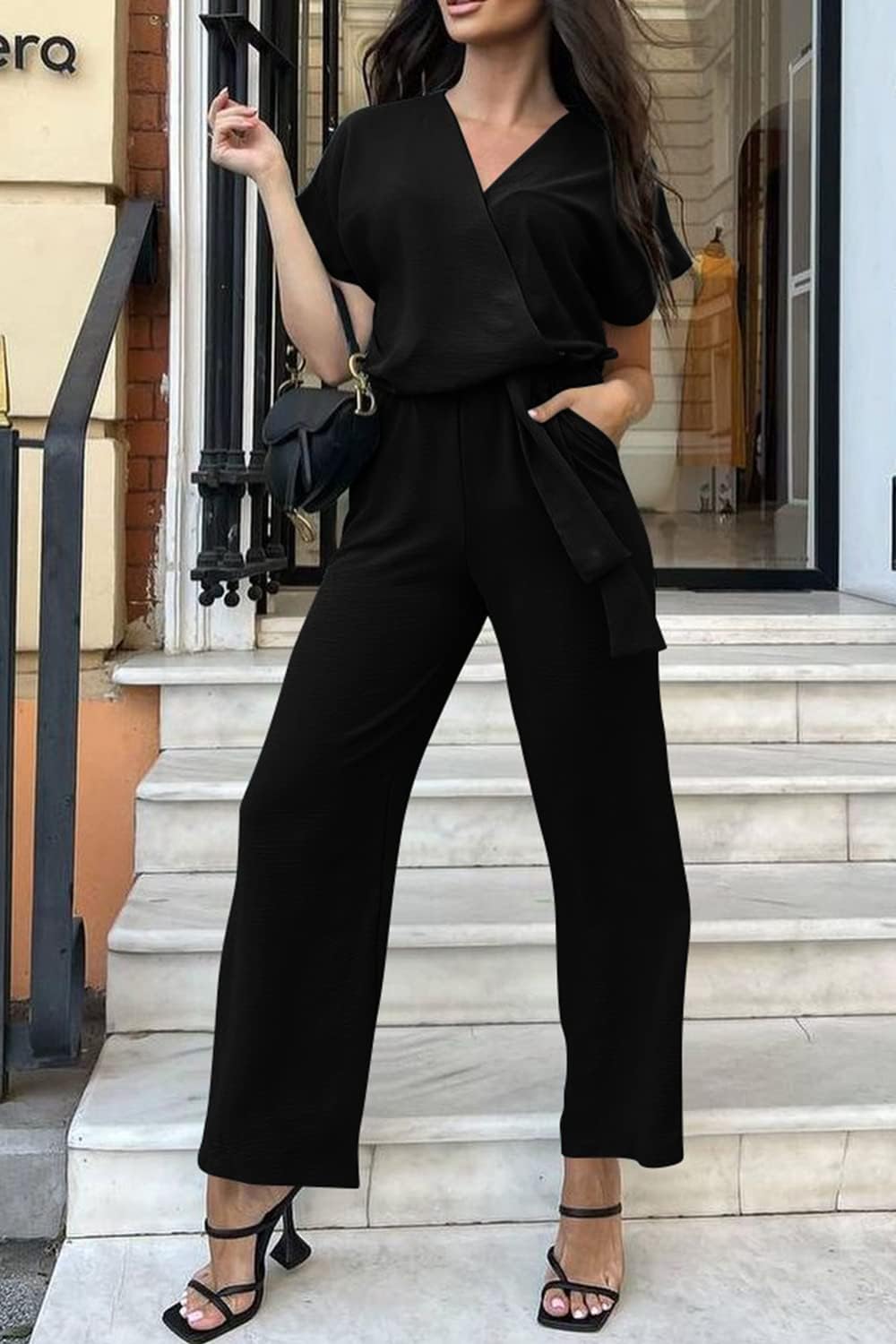 Wrap V Neck Pants Rompers Accentuates Your Delicate Neckline, More Chic