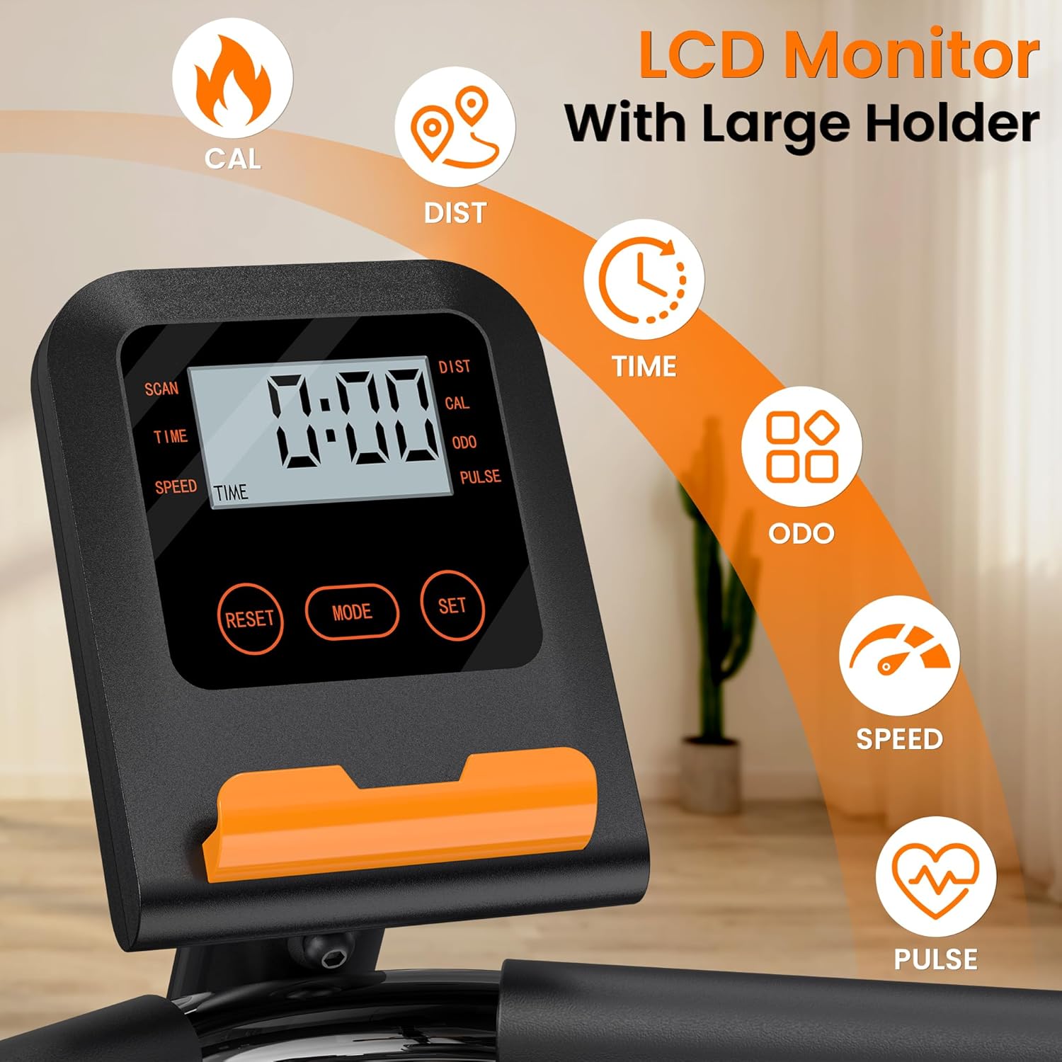 【Monitor Progress with Every Pedal】Stay motivated with real-time stats displayed on the clear LCD screen: track speed, time, distance, calories, odometer, and heart rate. Integrated pulse sensors on the handles provide accurate heart rate readings. This exercise bike offers the insights you need to stay on track, whether for daily movement or serious fitness goals.