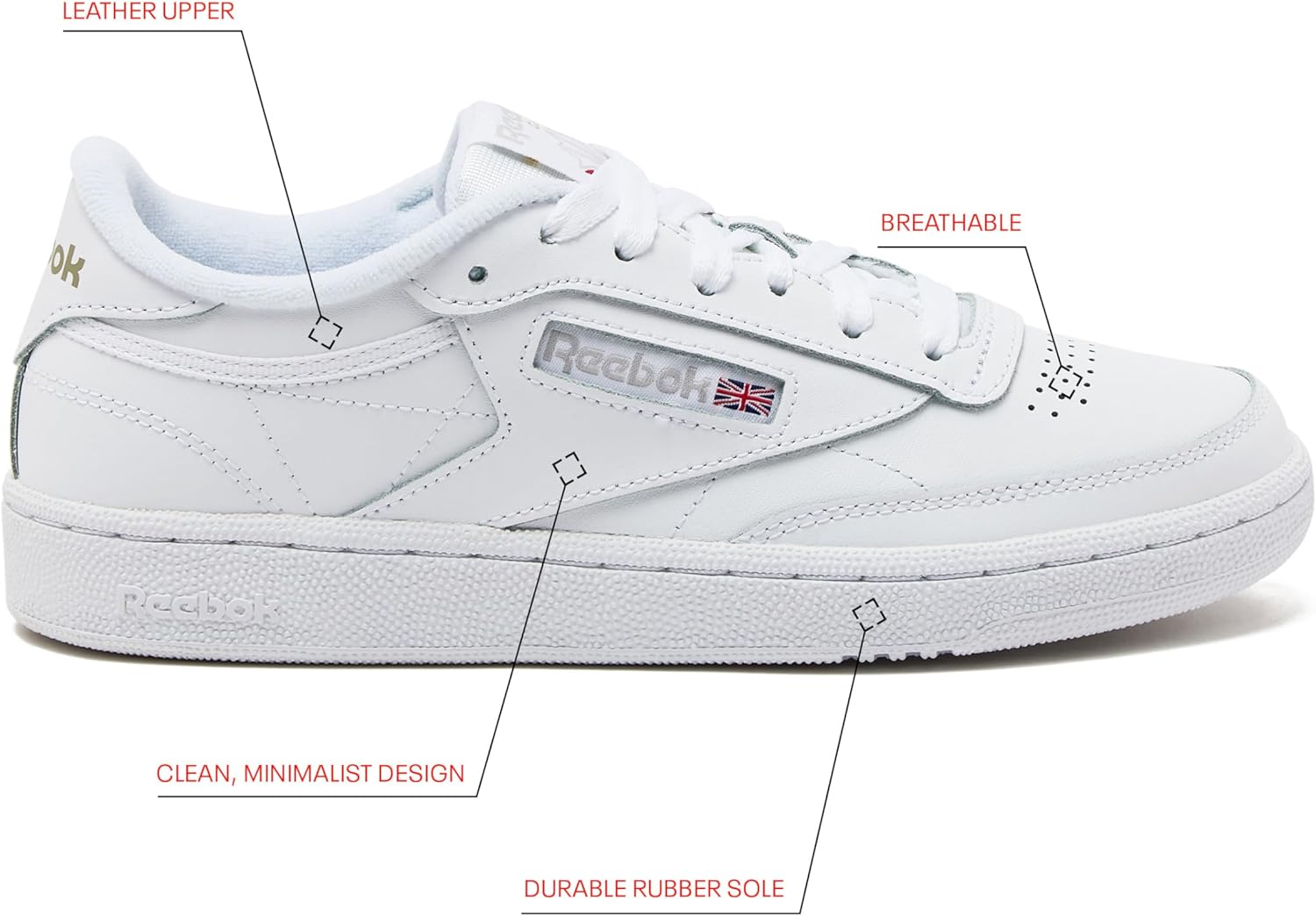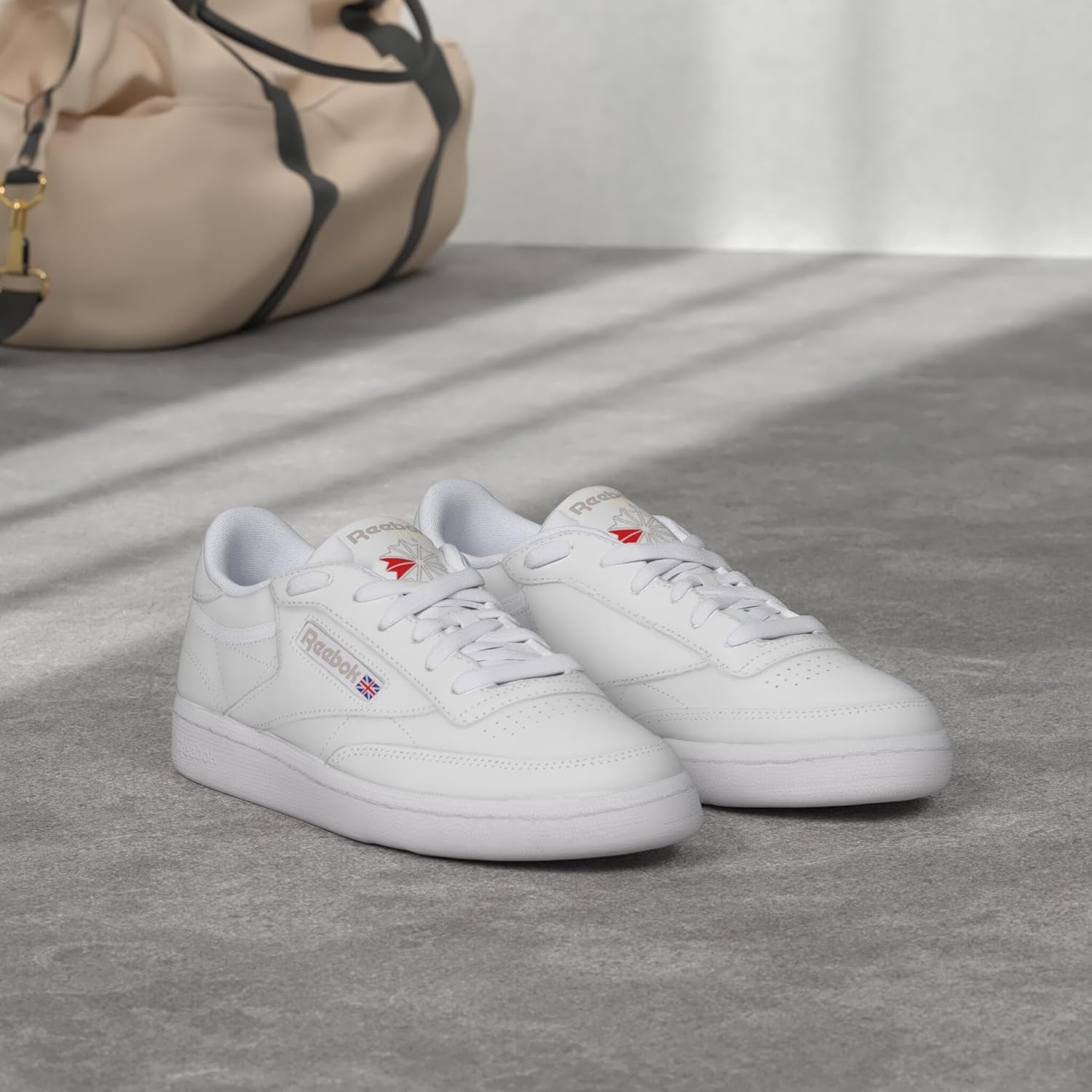 From our classics collection, the Reebok Club C 85 womens tennis shoes are crafted from supple virgin leather and feature a non-marking rubber outsole for ultimate grip and durability. The simple minimalist design makes these ladies sneakers both timeless and versatile. Perforated details make them breathable, and terry padding on the tongue and collar make them easy to wear all day. The high abrasion resistant rubber outsole ensures stability on the court, while the cushioned EVA midsole keeps you comfortable all day long. Categories: white tennis shoes women, womens fashion sneakers, women’s tennis shoes, tenis blancos para mujer.