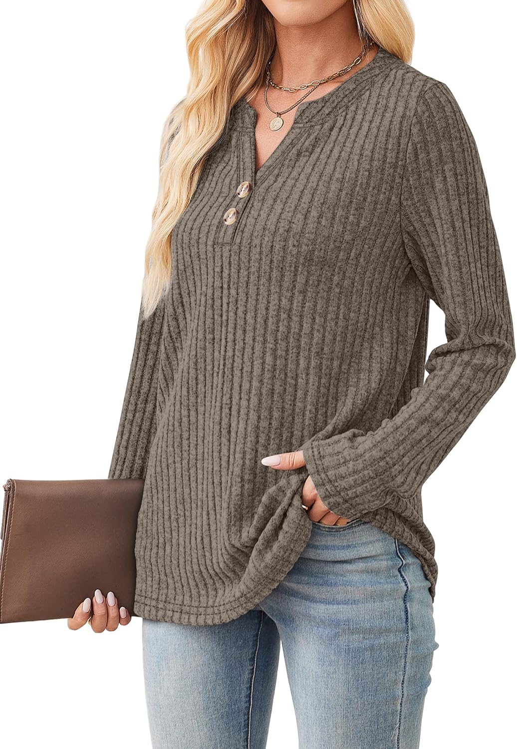 SAMPEEL Long Sleeve Shirts for Women V Neck Sweaters Fall Fashion Outfits Soft