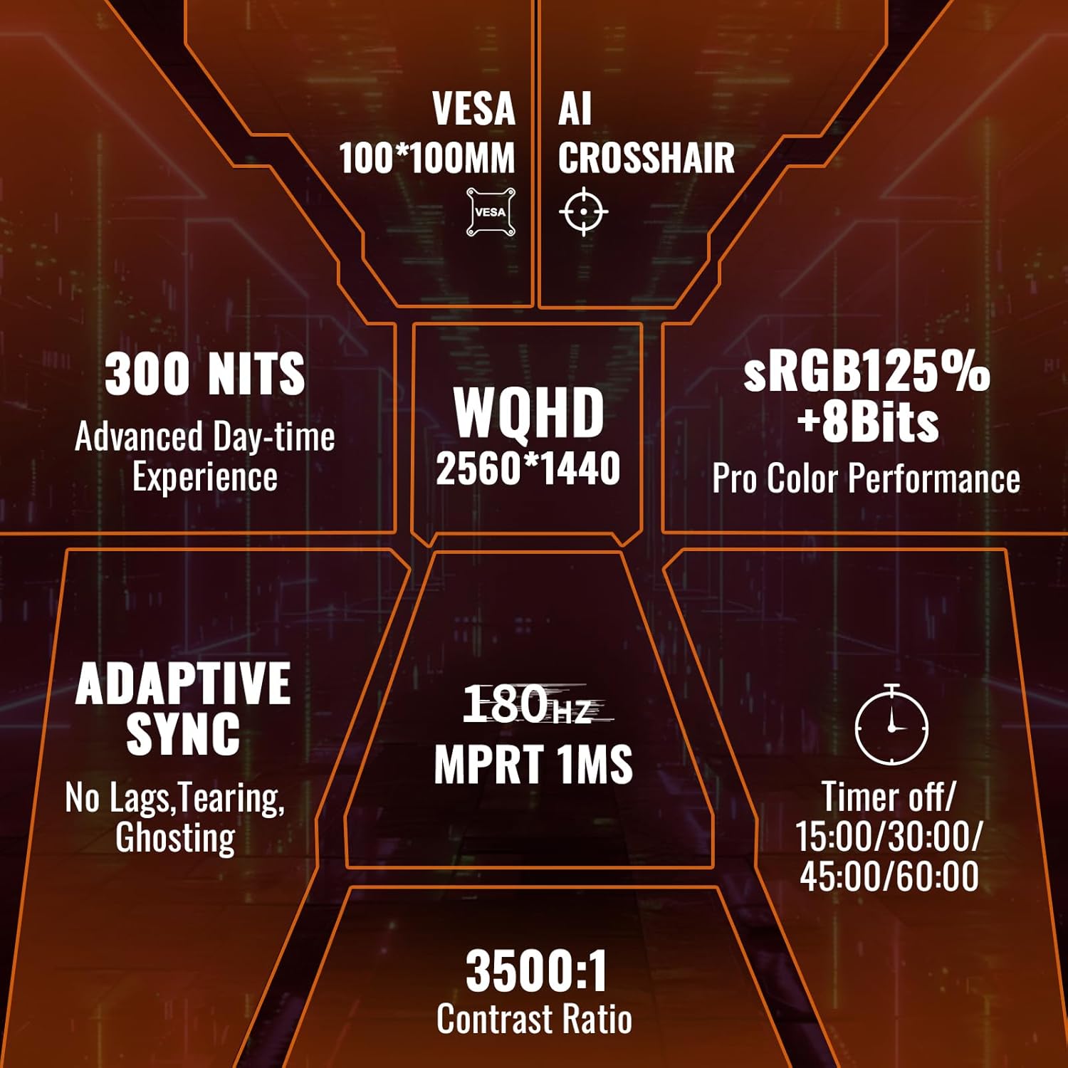 Input &Output :HDMI x2(Up to 144Hz)|DP 1.4X2(Up to 180Hz) | Earphone | No speakers