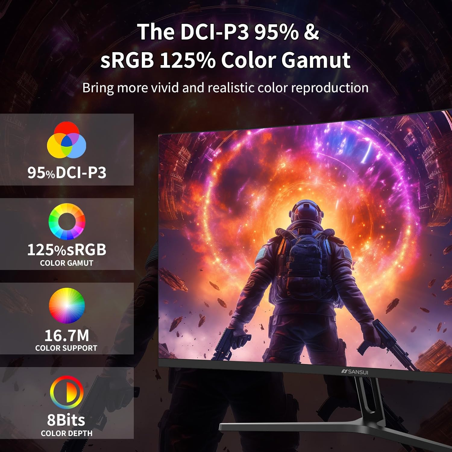 Warranty: SANSUI 32-inch Curved gaming computer monitor support money-back and free replacement warranty from order date within 30 days and lifetime technical support.