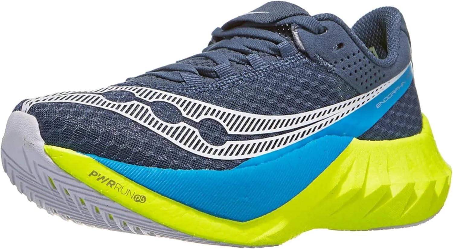 The Endorphin Pro 4 running shoe is a miraculous feat of engineering: snappy and responsive yet smooth and efficient. Something we achieved by fusing PWRRUN PB and PWRRUN HG together in the midsole – an industry first. A full carbon plate adds longitudinal stiffness and maximum metabolic efficiency. And the silky-smooth heel liner and integrated tongue system makes this marathon shoe feel like slipping on an old friend come race day.