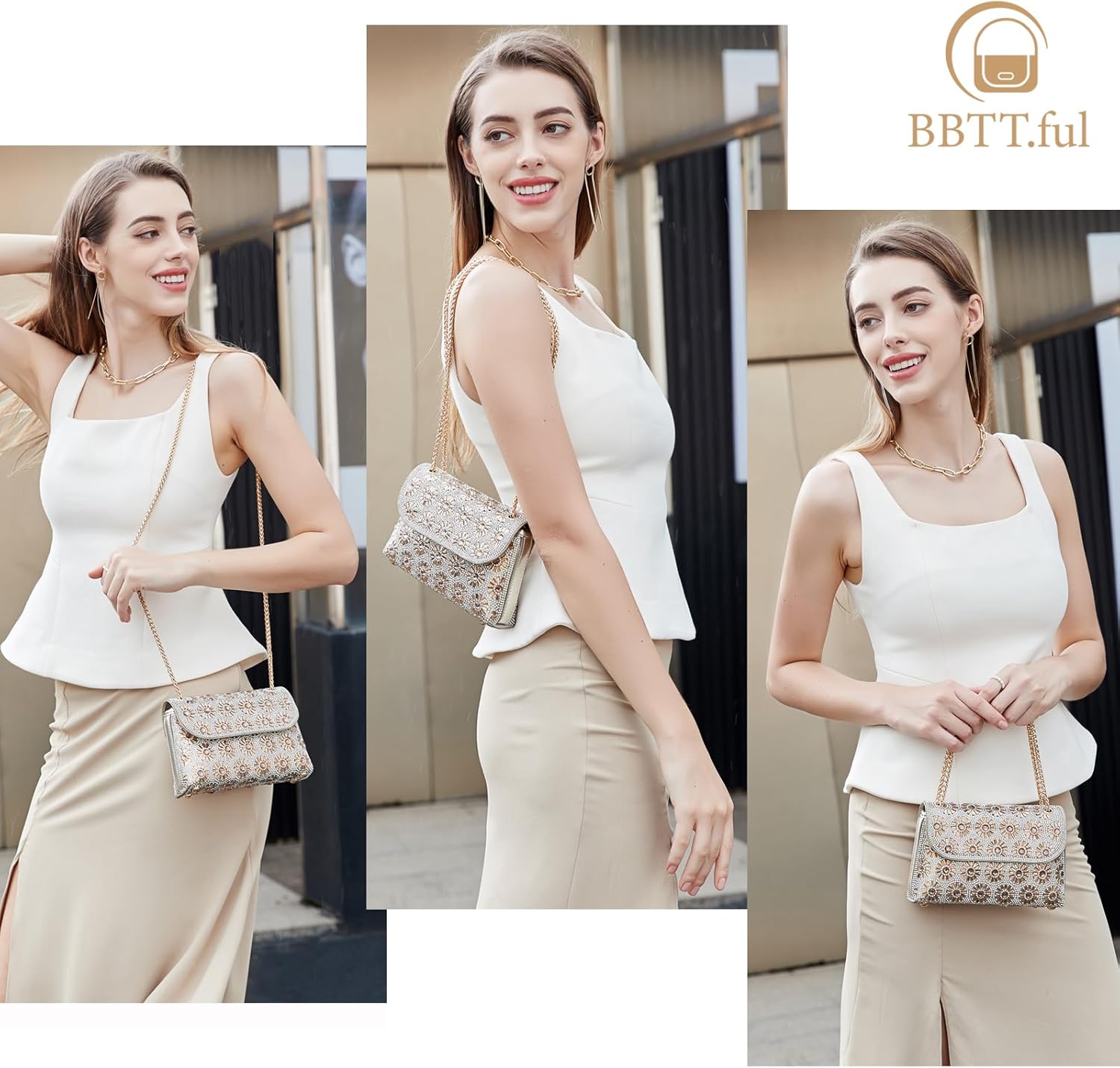 Customers find the handbag looks expensive and appreciate its impressive quality, with one noting it’s well-made. The bag is roomy enough for a big iPhone and holds essentials without feeling bulky, making it perfect for weddings and special occasions. They like the gold and silver colors and find it feels high quality for its price, with a sturdy chain. However, several customers report an awful chemical smell.