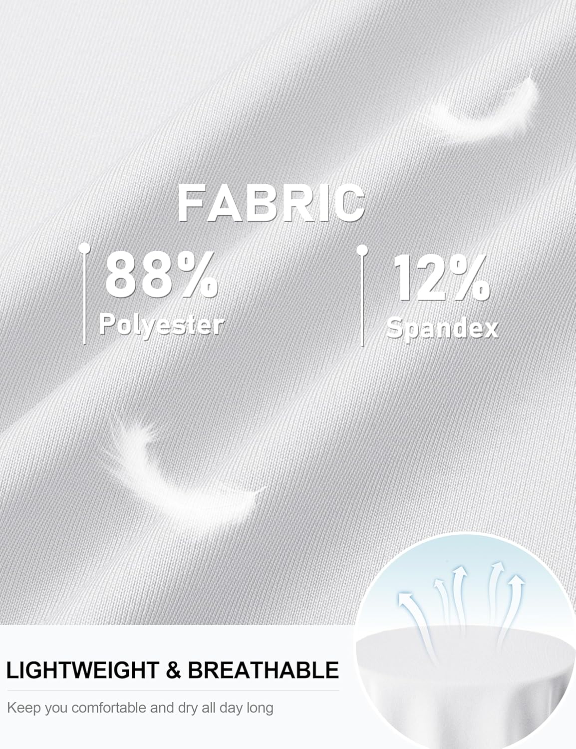 Fabric: 92% Polyester & 8% Spandex quick dry fabric.