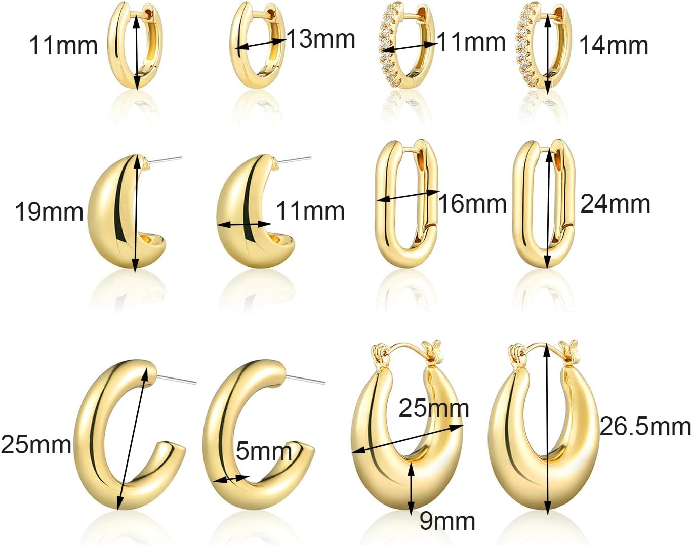 Trendy Gold Hoop Earrings set for Women Girls