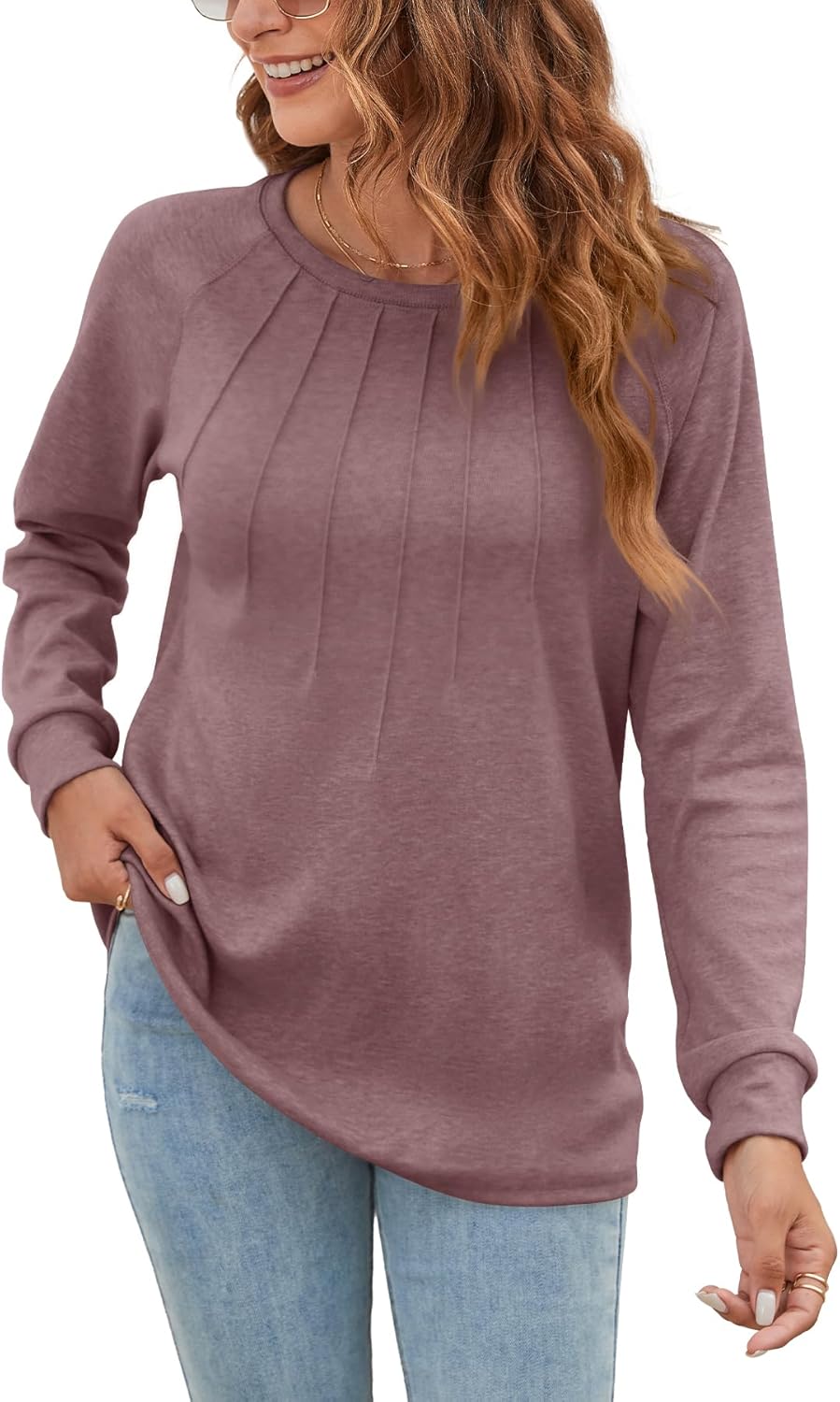 Women Long Sleeve Shirts Casual Tops Dressy Blouses Fashion Pleated Tunic