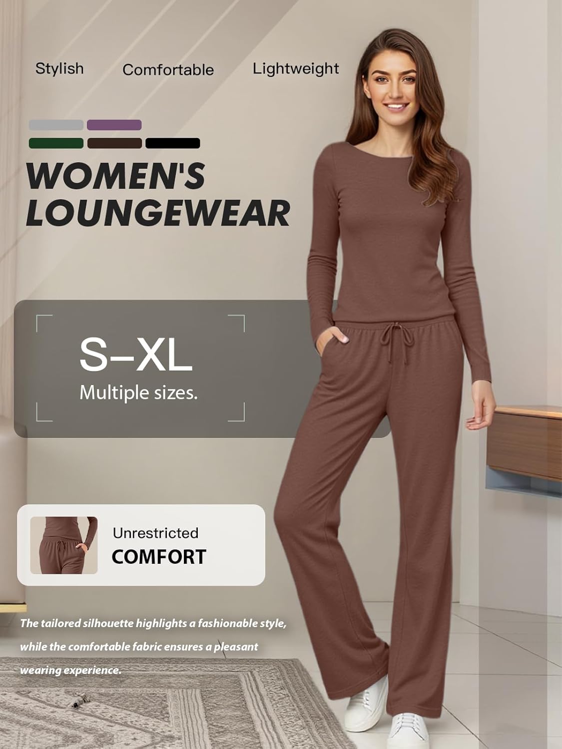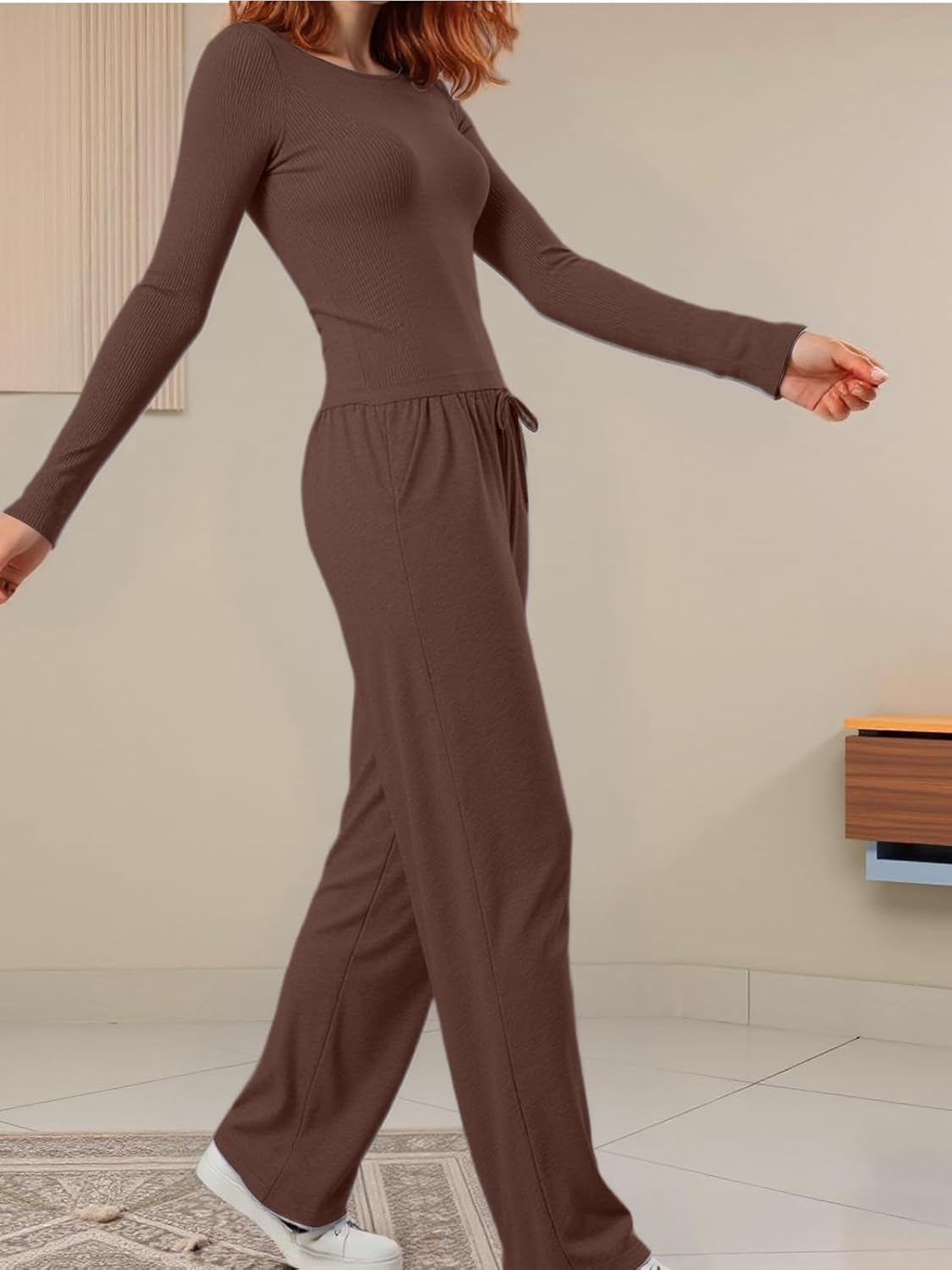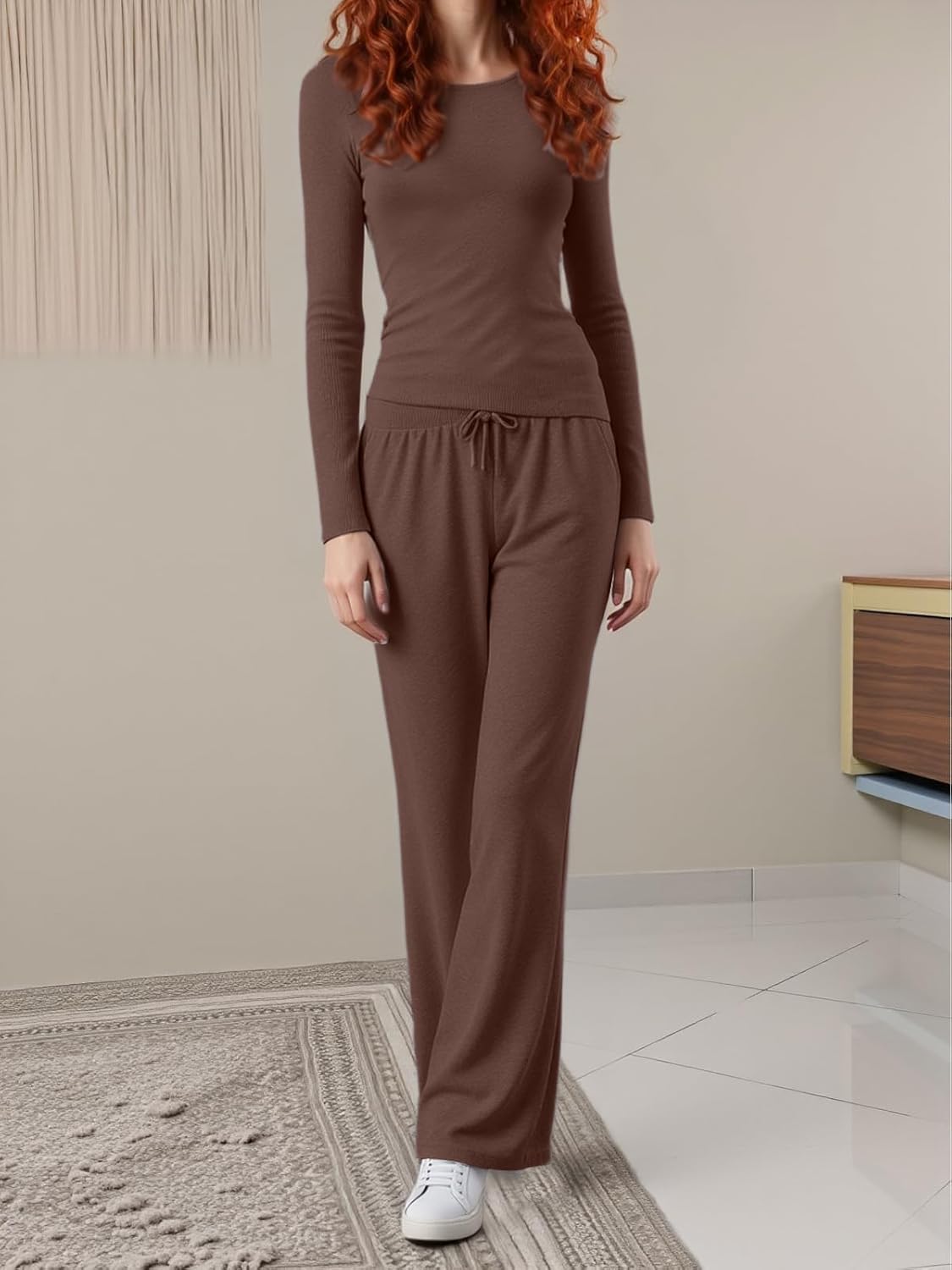 Women’s Long Sleeve Top and Drawstring Wide Leg Pants Pajama Set, Comfortable and Stylish Homewear with Pockets