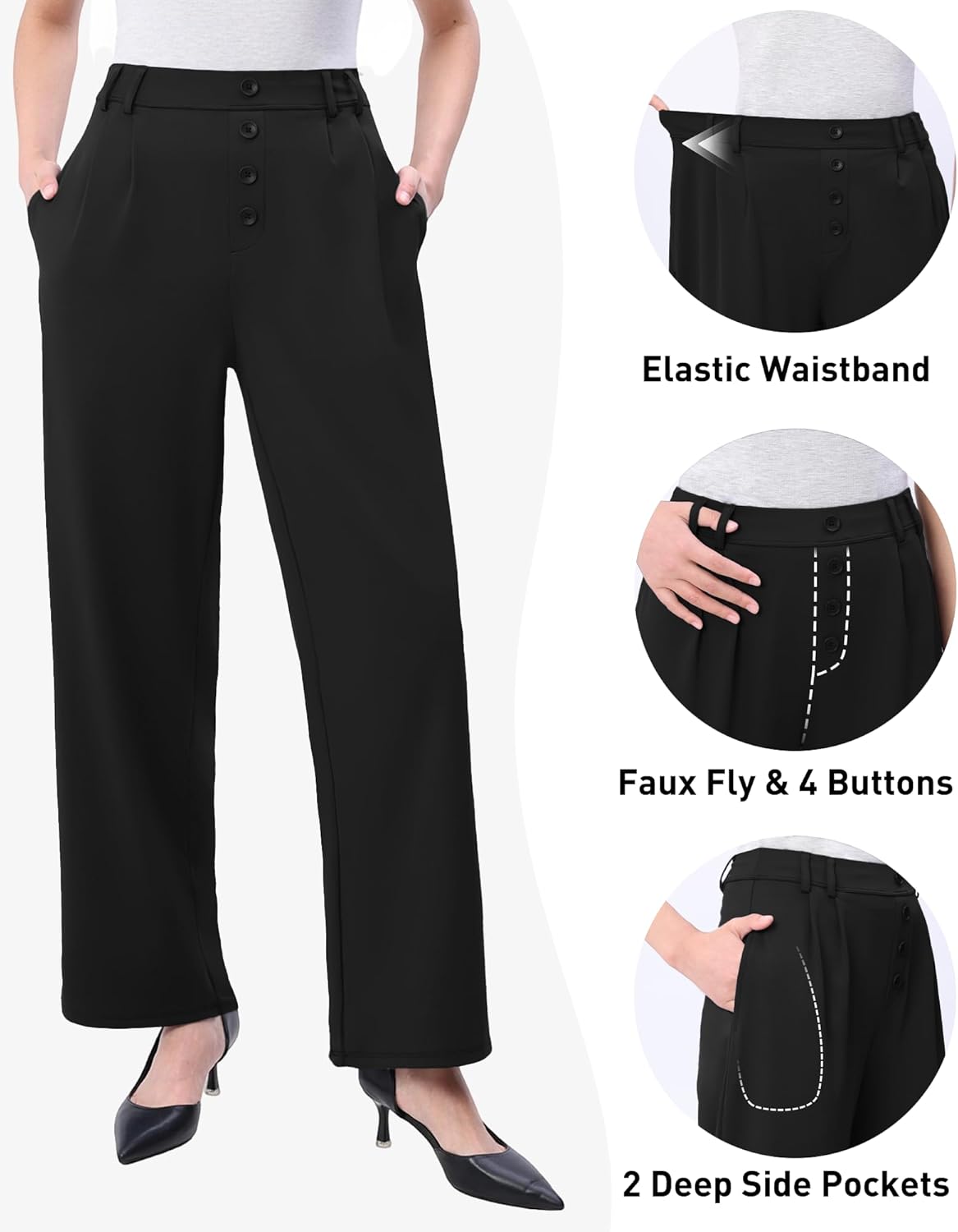 Be the first to review “Womens Stretchy Dress Pants Straight Wide Leg Work Trousers Business Casual Pull On Office Slacks with Pokets”
