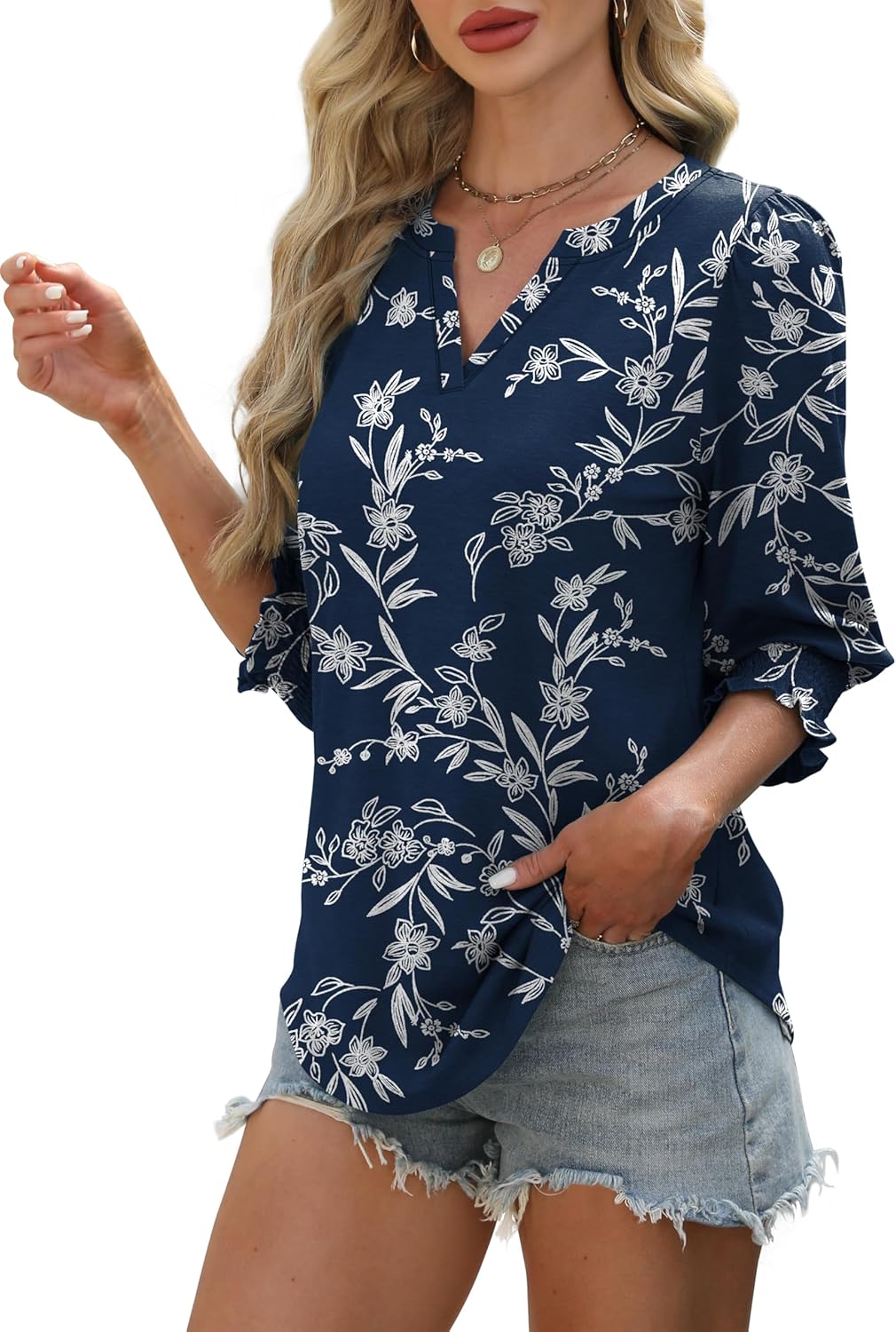 Be the first to review “XIEERDUO Blouses for Women Dressy Casual 3/4 Length Sleeve Womens Tops V Neck T Shirts with Smocked Cuffs”