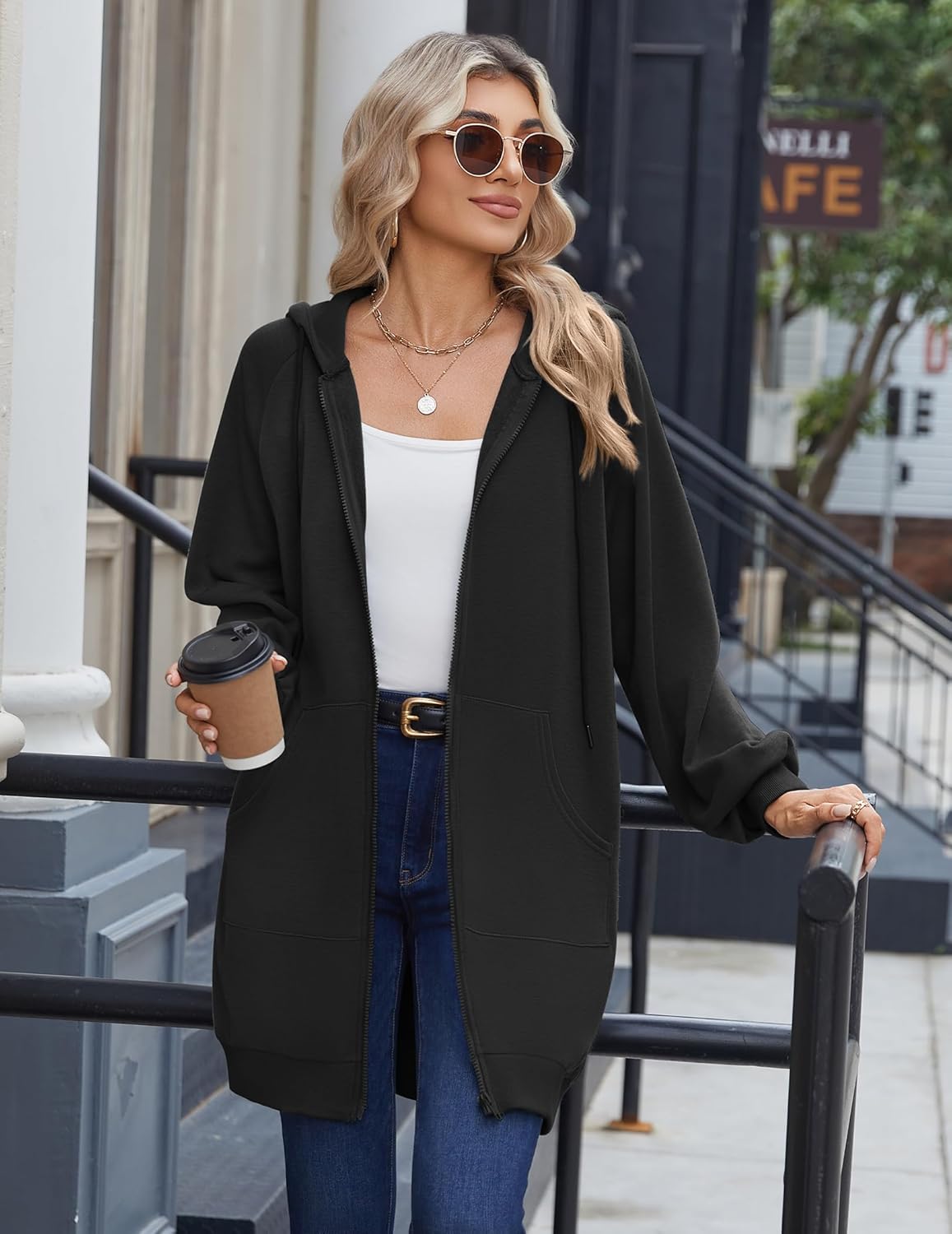 Hoodies for Women Fashion Full Zip Up Long Sweatshirts Jacket